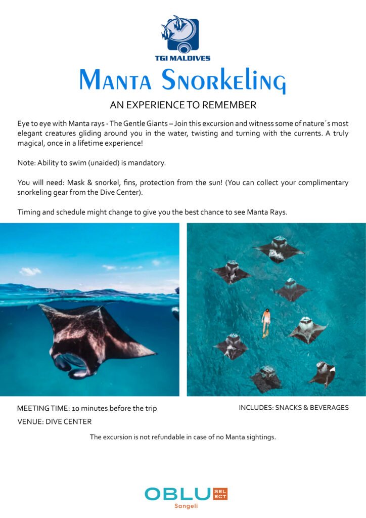 1 or 2 activities between turtle snorkeling, manta snorkeling, snadbank visit, reef snorkeling